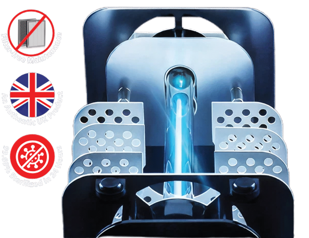 AIRsteril products features a filter-free design, eliminating the need for costly filter replacements and time-consuming maintenance —making it a more convenient and cost-effective solution for cleaner air.